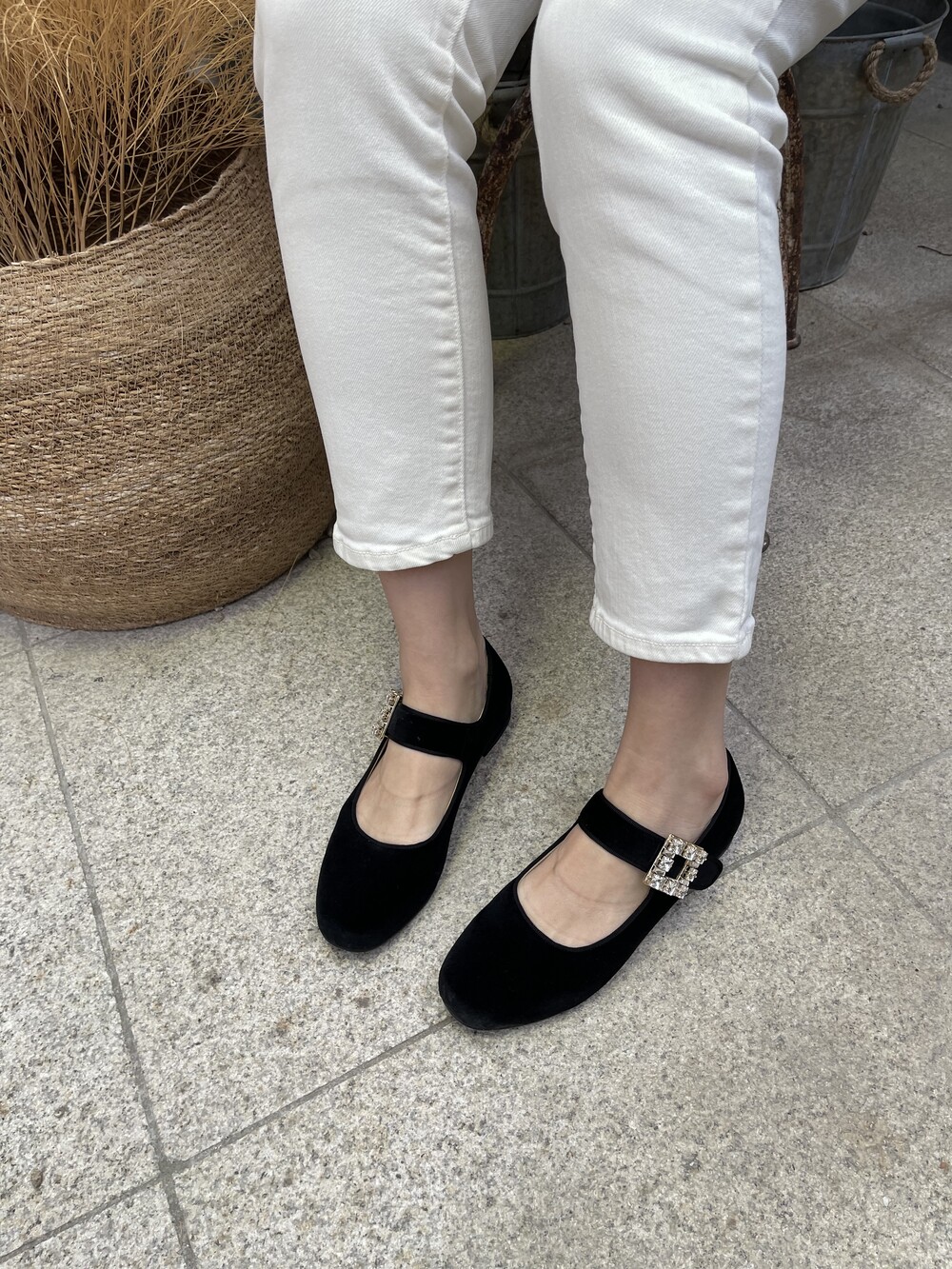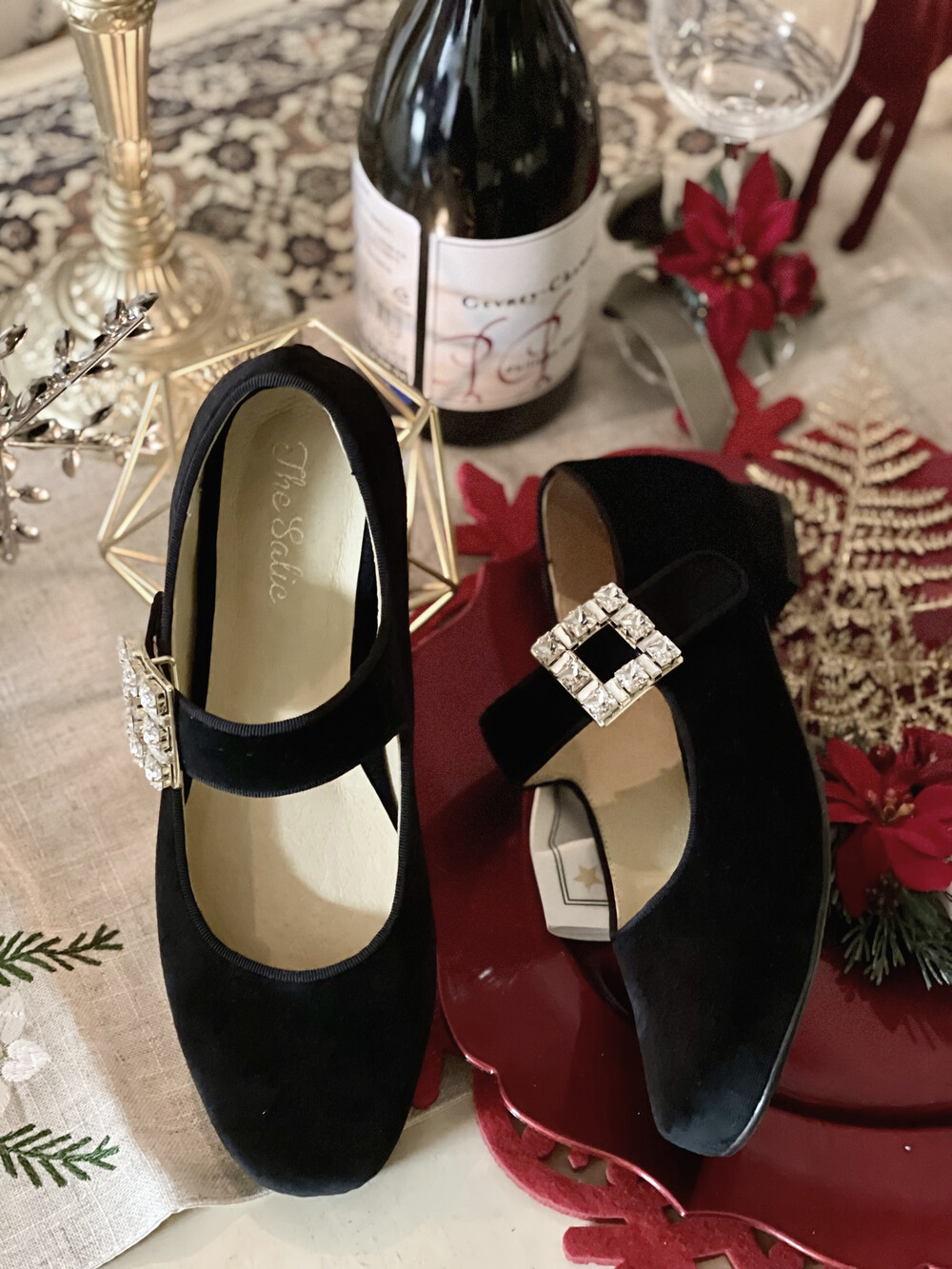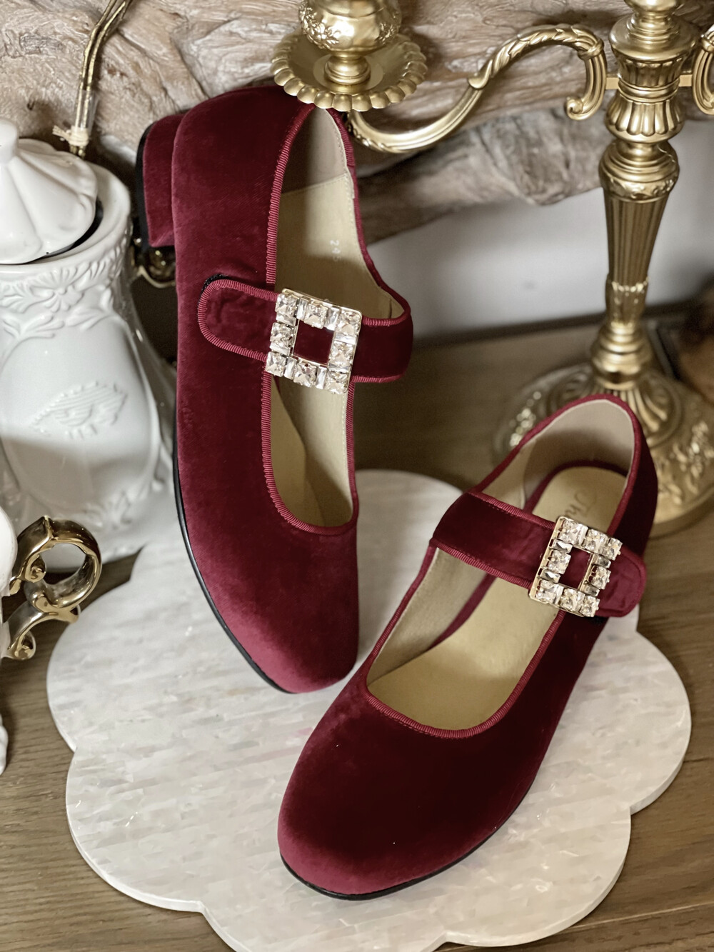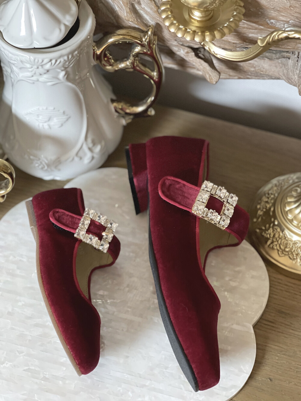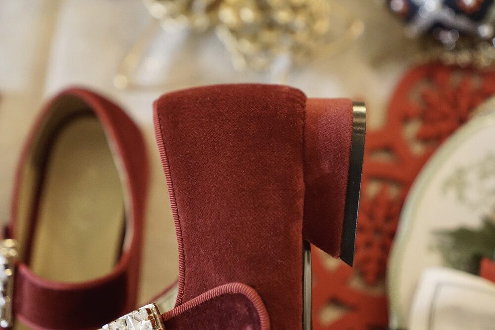 퀸 크리스탈 벨벳 슈즈