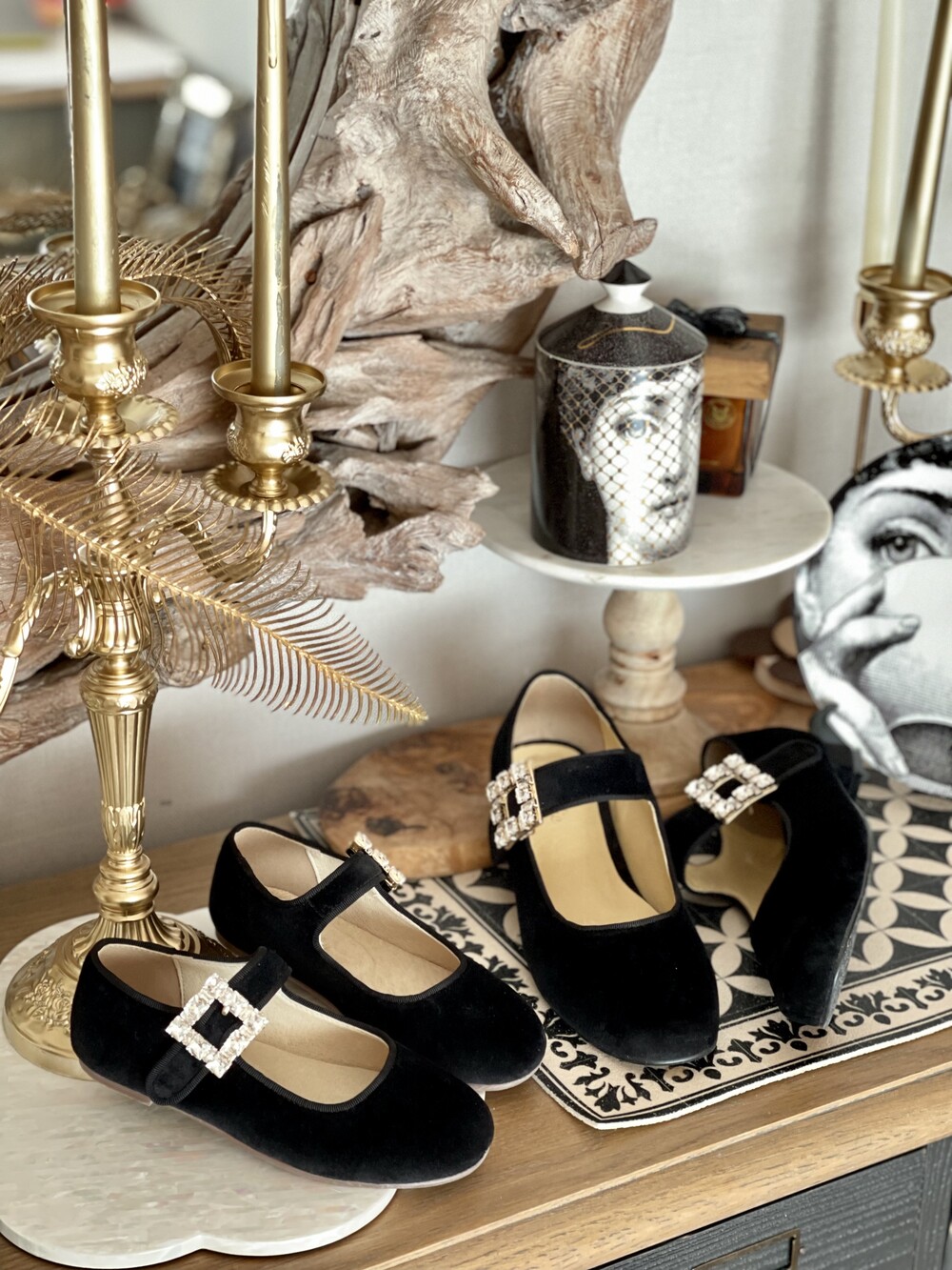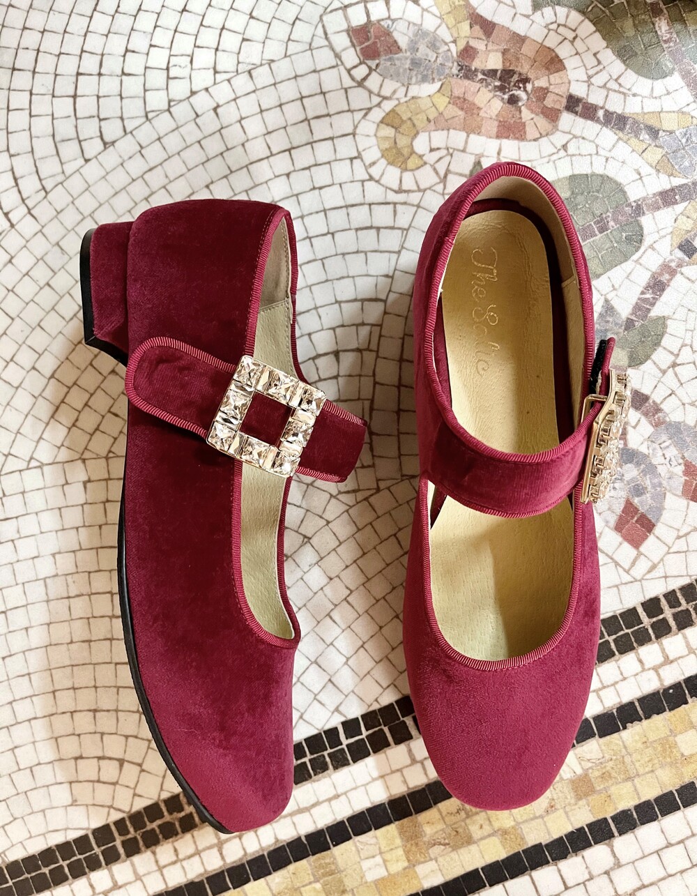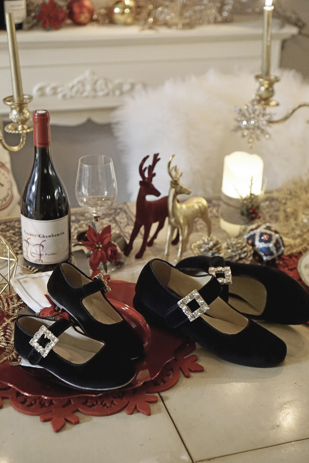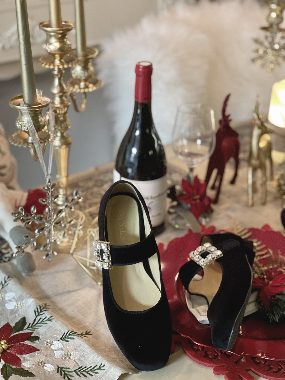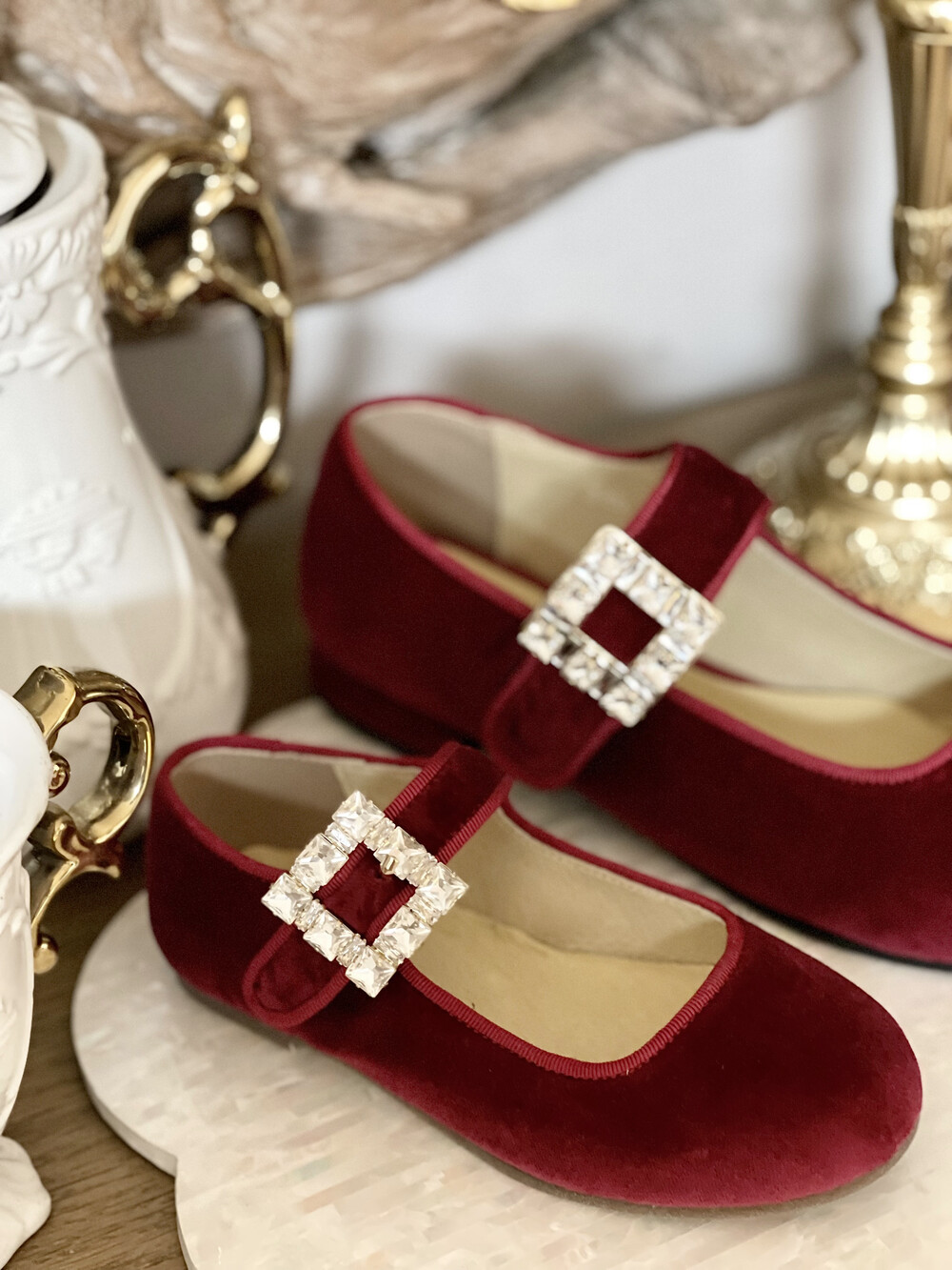 퀸 크리스탈 벨벳 슈즈