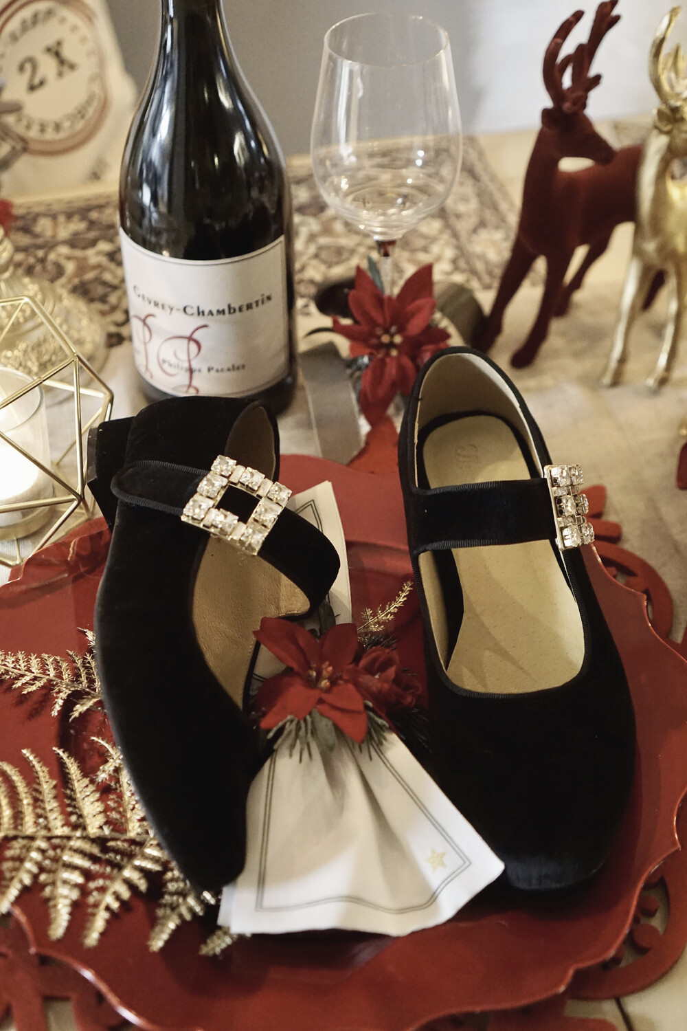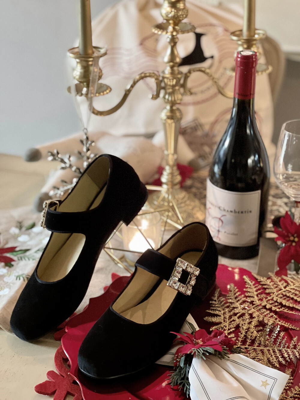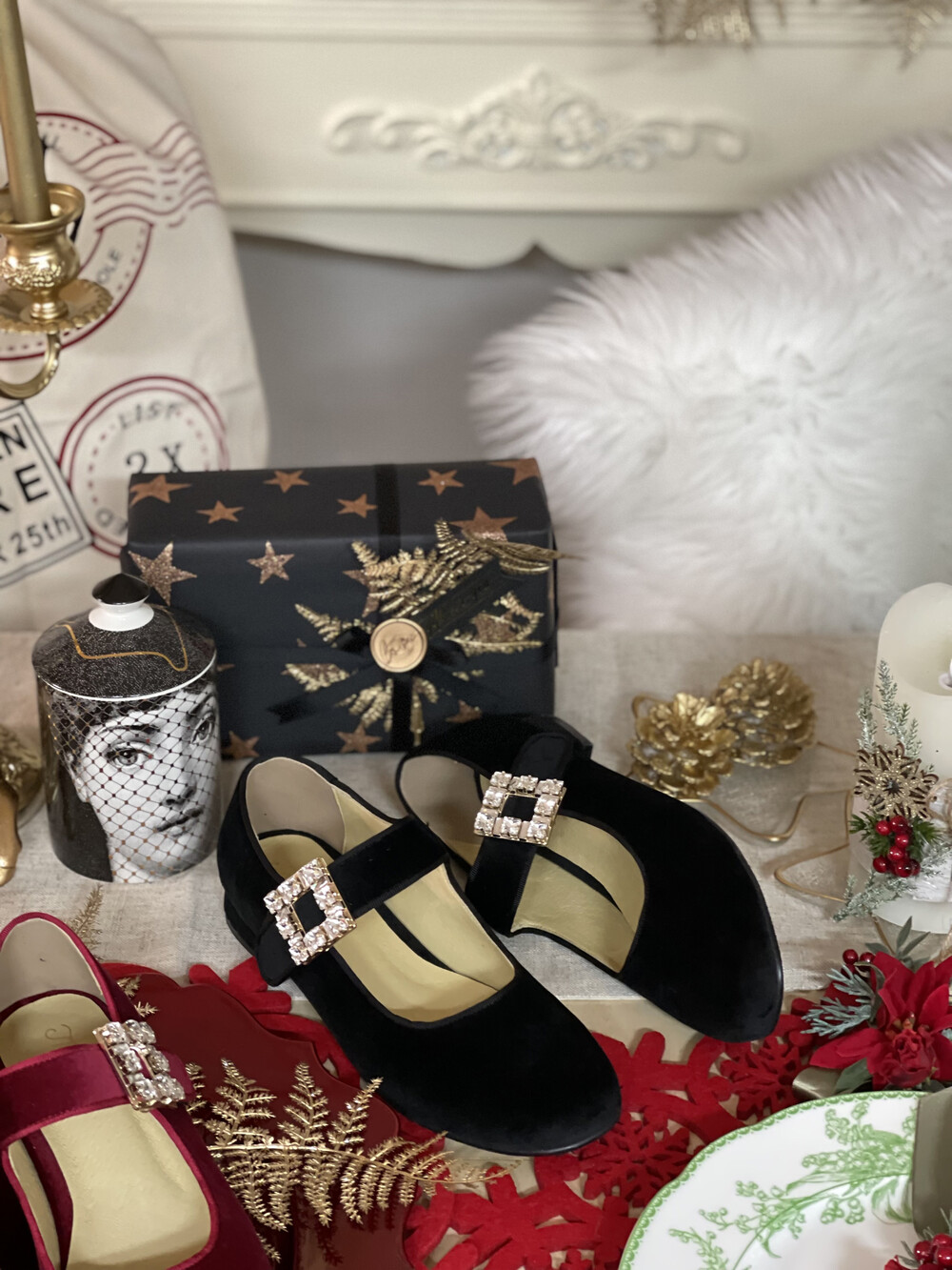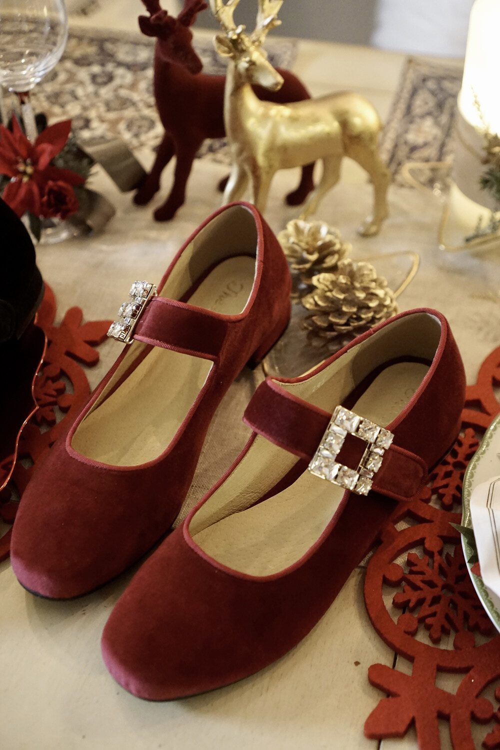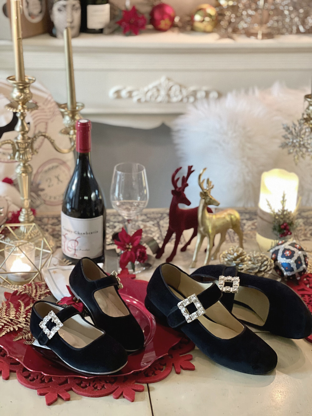 퀸 크리스탈 벨벳 슈즈