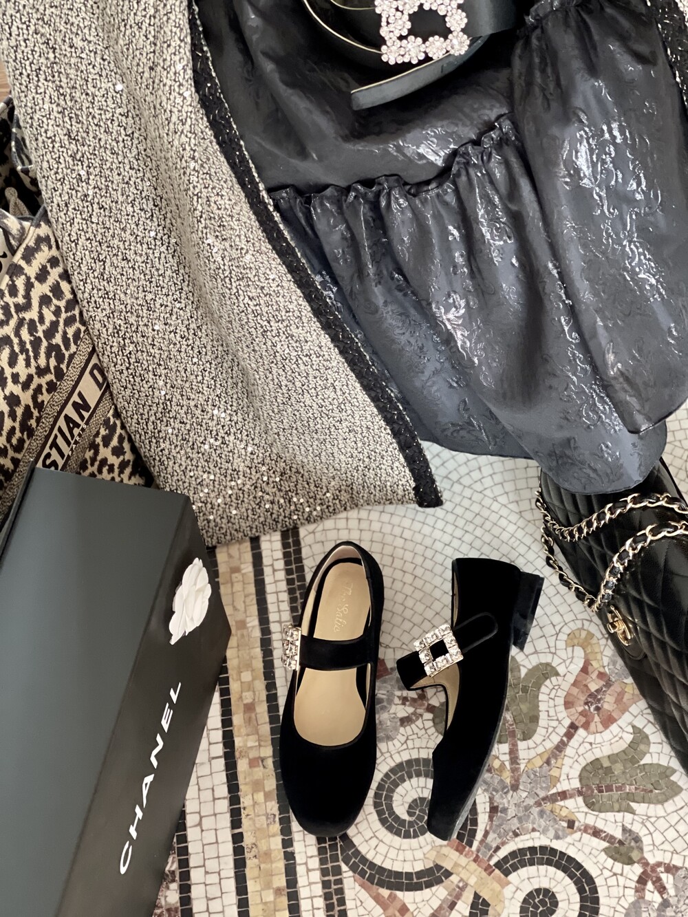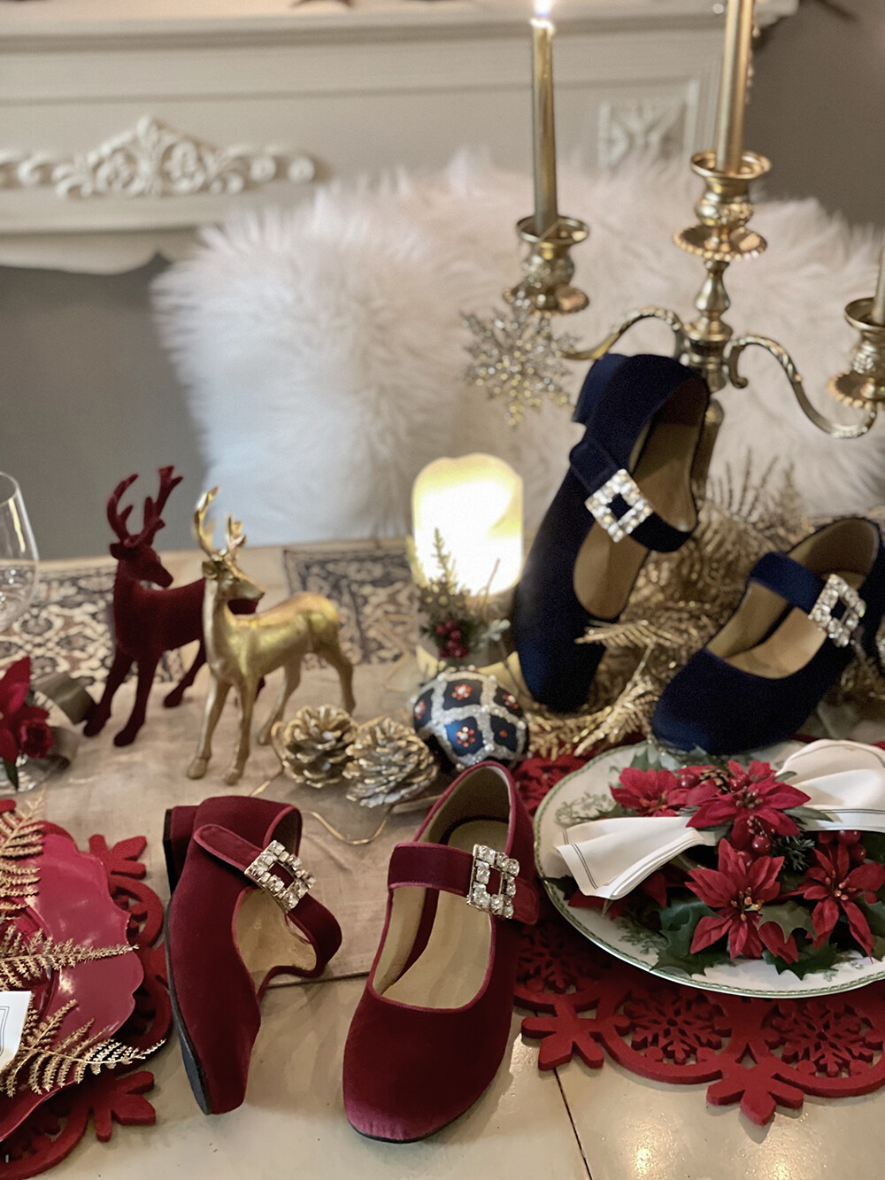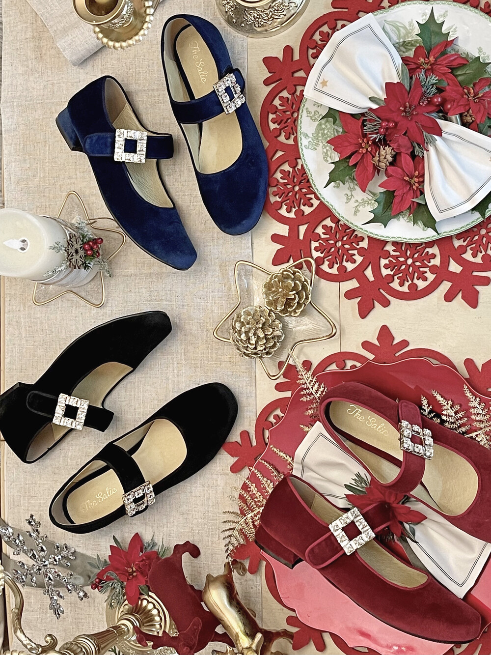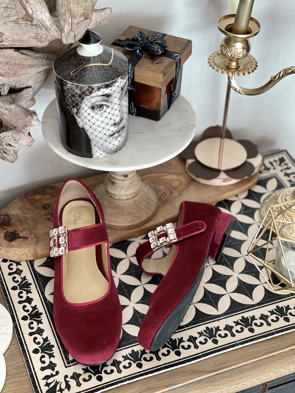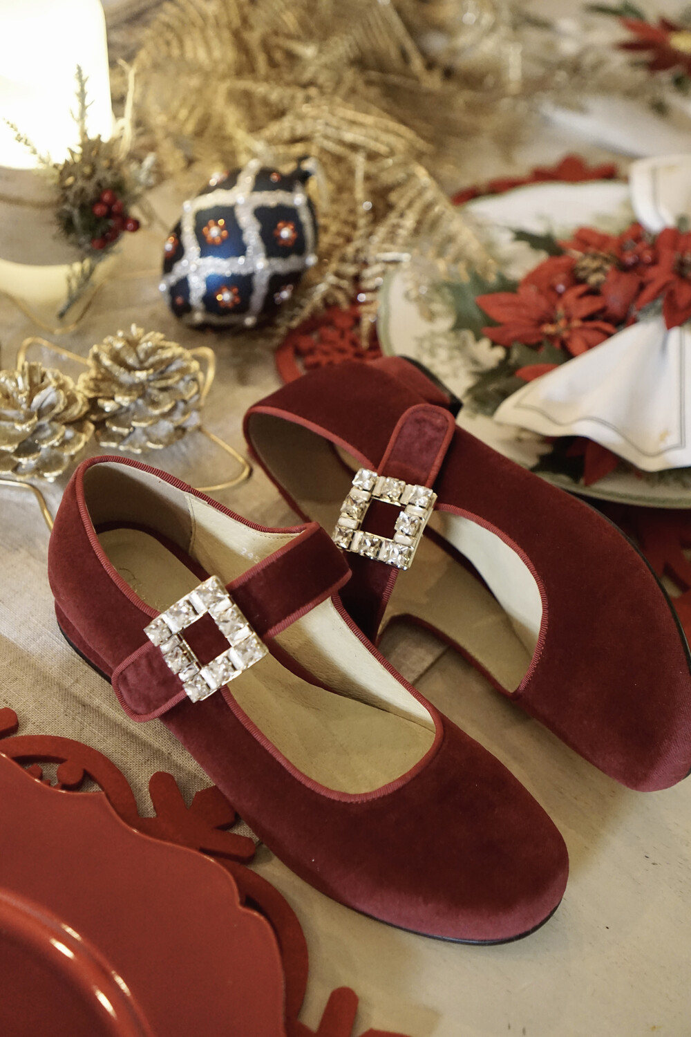 퀸 크리스탈 벨벳 슈즈