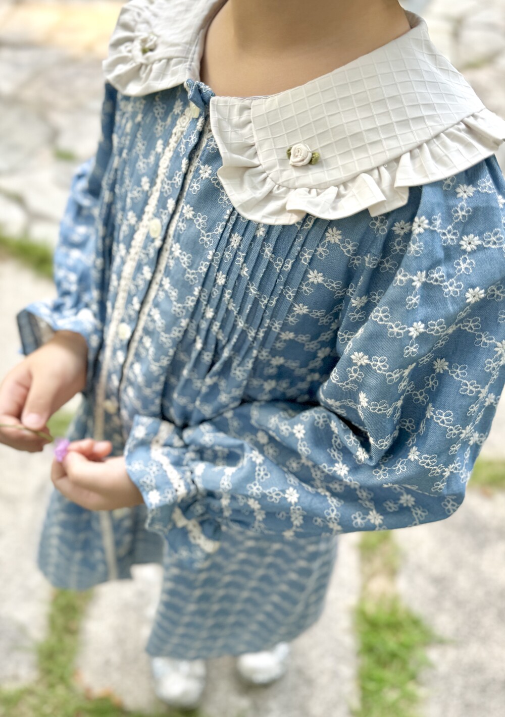 카라에 이쁜 꽃과 몸판에 꽃 자수가 더욱 러블리한 원피스입니다.