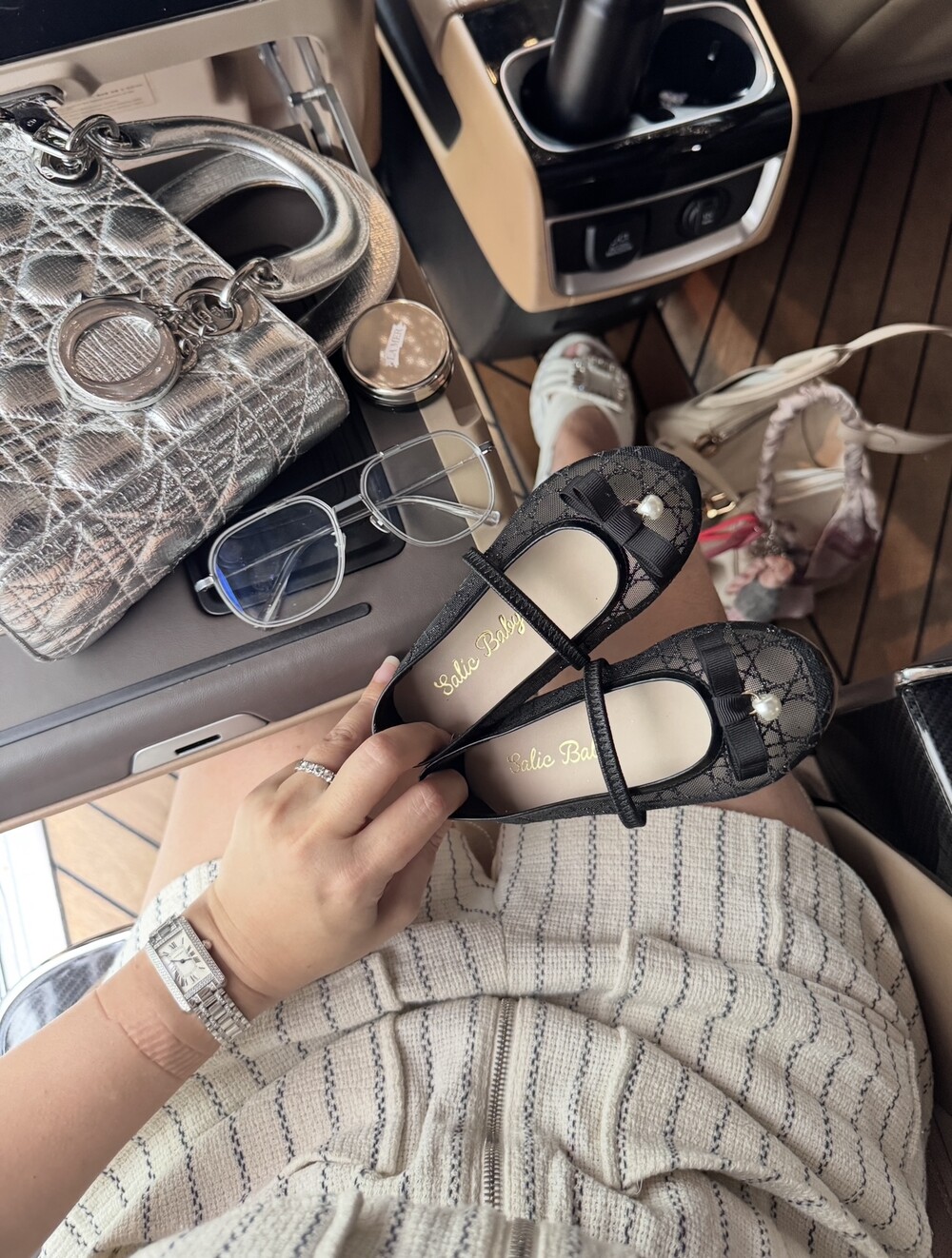 까나쥬 패턴의 반짝이가 되어있는 메쉬 소재의 플랫입니다!