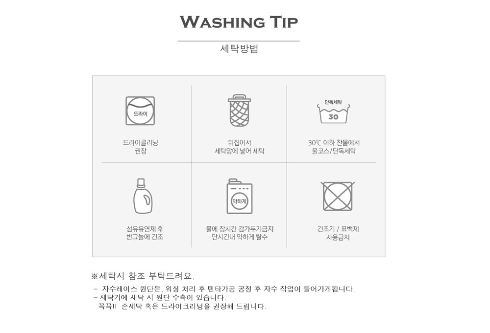 꼭꼭!! 손세탁 혹은 드라이크리닝을 권장해 드립니다.