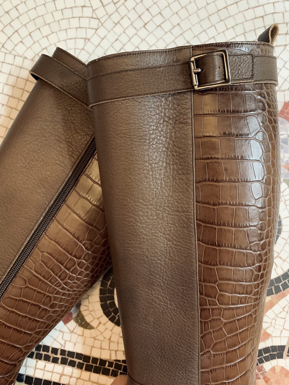 고급스럽고 우아한 무드의 컬러로 맞춤 제작한 악어무늬 소가죽이 콤비된
